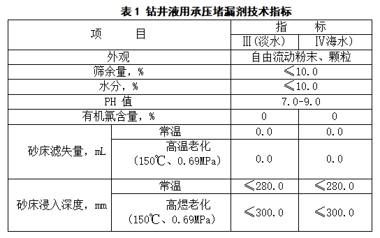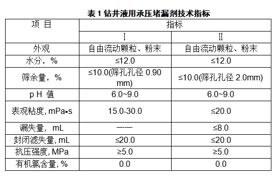 鉆井液用承壓堵漏劑(I、II型)技術(shù)要求